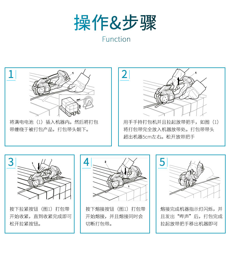 產(chǎn)品介紹: 電動(dòng)打包機(jī)廣泛用于食品、醫(yī)藥、五金、化工、服裝、郵政等行業(yè),適用于紙箱打包、紙張打包、包裹信函打包、藥箱打包、輕工業(yè)打包、五金工具打包、陶瓷制品打包、汽車配件打包、日化用品打包、文體用品打包、器材打包等各種大小貨物的自動(dòng)打包捆扎。