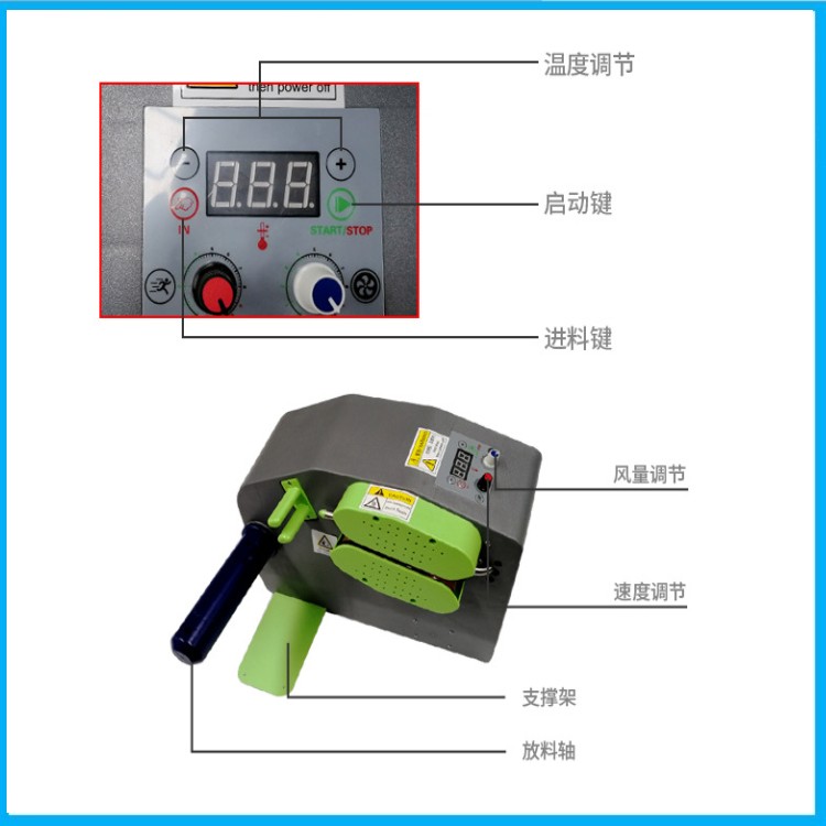 塑膠外殼,溫度,速度,風(fēng)量,可調(diào),填充袋、葫蘆膜、四連排均可充氣,快可達(dá)12米/分鐘