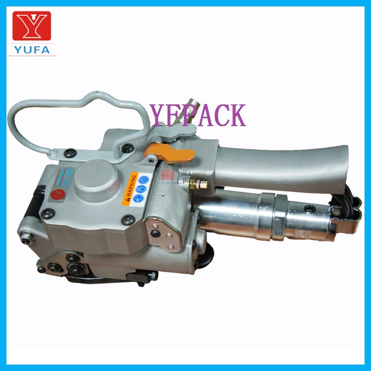 (1)、綁帶:用氣動打包機打包帶將包裝物捆好,左手將交疊部分握住,尾部大約留300mm左右,用右手將余下部分輕輕拉出。 裝打包帶:右手握住手柄和張緊器(以保證緊輪與壓板掛齒間張開最大),將打包帶的上下部同時插入打包機。 注意:氣動打包機打包帶的重疊部分必須被固定切刀的下刀片分開:松開張緊器(緊輪緊緊地夾住打包帶)。